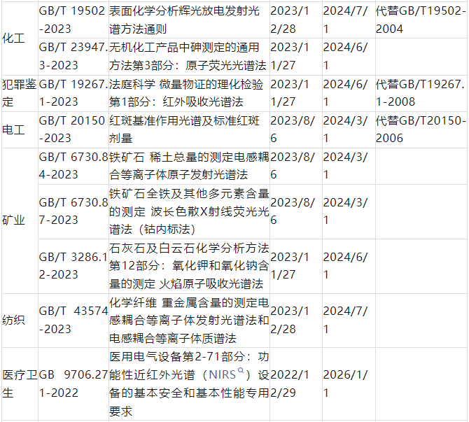 分析測試百科網特整理了相關信息即將實施的光譜國家標準,涉及材料、冶金、化工、電工、紡織、醫療衛生等領域。