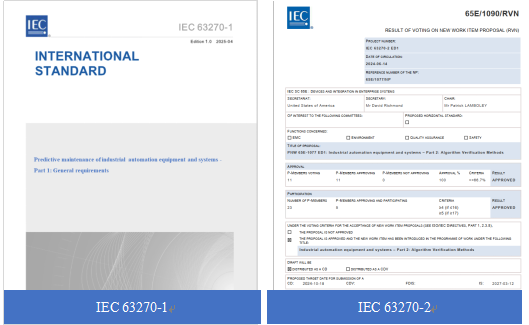 2025417日,我國牽頭制定的國際標準IEC 63270-1:2025 Predictive maintenance of industrial automation equipment and systems -Part 1: General requirements》正式發布。這是IEC首項預測性維護國際標準,標志著我國在預測性維護技術研究與國際標準化領域取得突破性進展,為人工智能與制造業深度融合注入新動能。