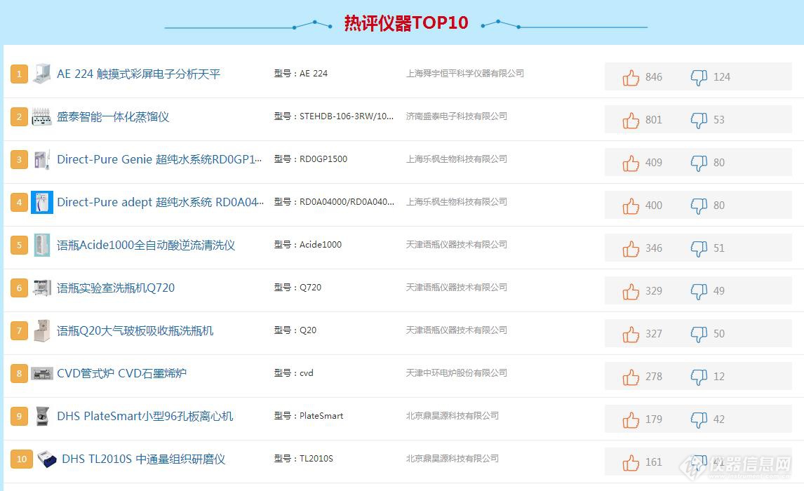 隨著申報儀器數(shù)量的不斷增加,相關(guān)儀器的“入圍評審”正式啟動。通過初審的68臺儀器開始接受用戶的入圍評議。在活動專題網(wǎng)站上,用戶通過采取投票和評論的形式,對儀器展開入圍評審。截止日前,剔除惡意刷票后,收到用戶有效投票7686張,評論591條。