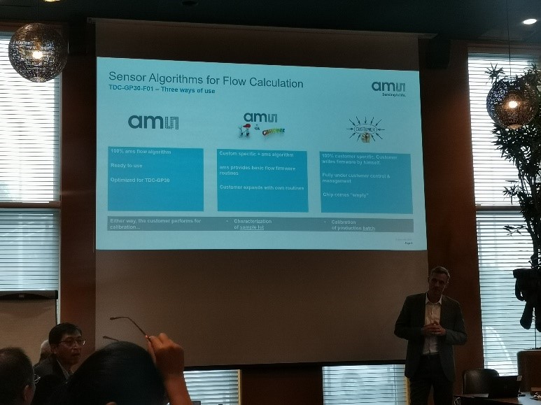 AMS向考察團介紹了溫度和濕度傳感器、壓力、流量傳感器產(chǎn)品以及相關(guān)技術(shù),對上述傳感器產(chǎn)品從產(chǎn)品工作原理、性能指標、應(yīng)用領(lǐng)域、現(xiàn)場演示四個維度做了詳細介紹。