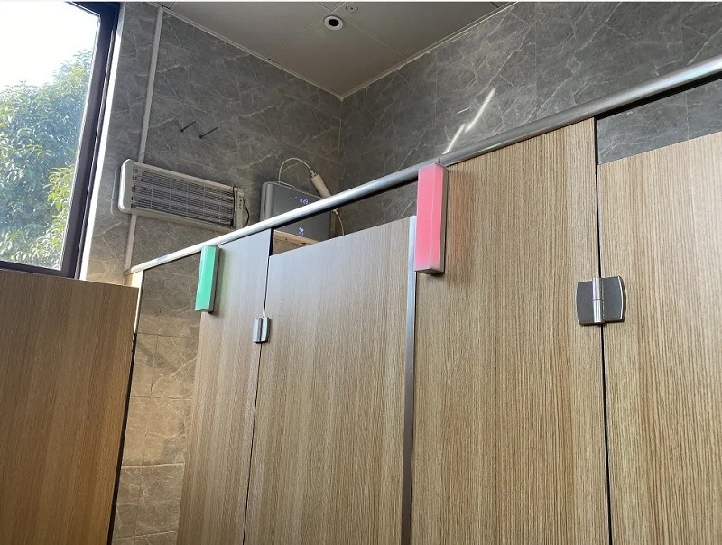 3.快速找空位:傳統(tǒng)公廁進(jìn)入后,有時(shí)很難確定廁位是否有人,隔間門口的紅綠色標(biāo)志不清晰,總要挨個(gè)拉開來判斷。有了智慧公廁,這一問題便可以完美解決。每個(gè)廁位隔間上方都安裝了一個(gè)紅外傳感設(shè)備,當(dāng)使用者進(jìn)入后將門反鎖,廁位門上的燈柱便會自動由綠色轉(zhuǎn)為紅色,顯示該廁位“有人”,使廁所使用情況一目了然。