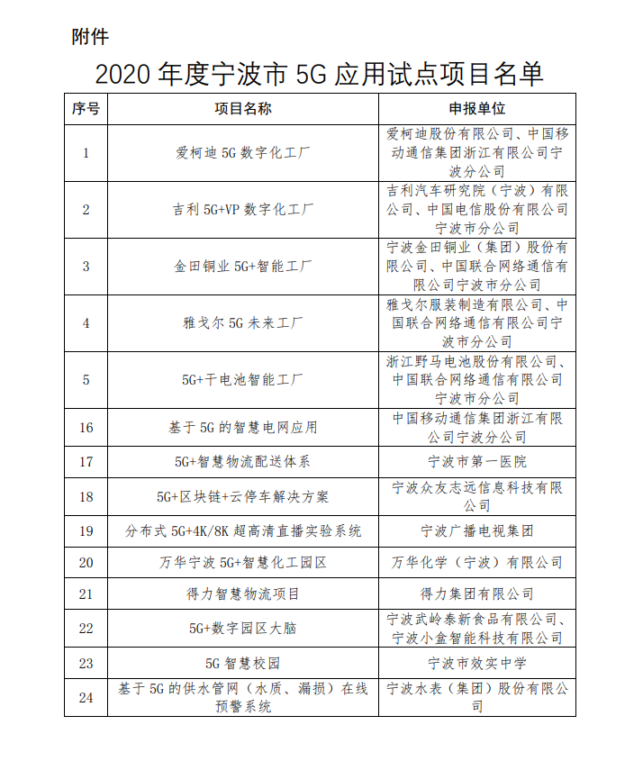 根據《關于征集2020年寧波市5G應用試點項目的通知》(甬經信箋[2020]284號)要求,經過單位申報、部門推薦、專家實地考察評審,寧波水表(集團)股份有限公司(以下簡稱:寧水集團)的“基于5G的供水管網(水質、漏損)在線預警系統”等24個項目被列入2020年度寧波市5G應用試點項目名單,并于2021年1月26日至2021年2月1日進行了網上公示。該項目主要內容有管網綜合感知終端/多參數水表(智能水表3.0產品)、5G通信終端、管網(水質、漏損)在線預警平臺等關鍵技術的研制,以及工程化應用等。