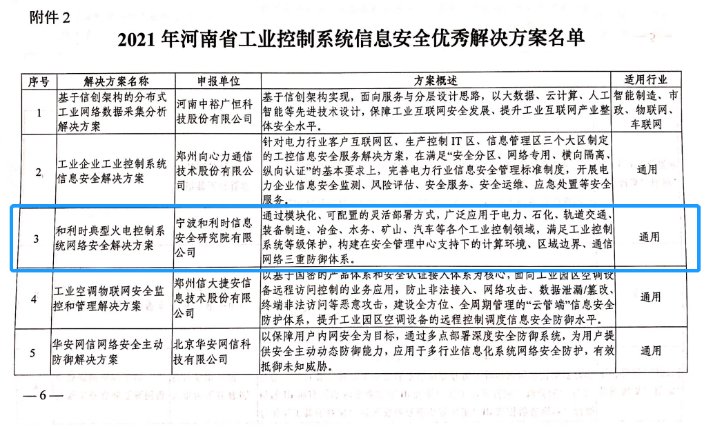 近日,河南省工業(yè)和信息化廳組織開展2021年全省工業(yè)控制系統(tǒng)信息安全新技術(shù)新產(chǎn)品和優(yōu)秀解決方案征集工作,經(jīng)地方工信部門初審?fù)扑]、省工業(yè)和信息化廳組織專家評(píng)審,網(wǎng)上公示等環(huán)節(jié),和利時(shí)工業(yè)安全態(tài)勢(shì)感知系統(tǒng)、和利時(shí)典型火電控制系統(tǒng)網(wǎng)絡(luò)安全解決方案強(qiáng)勢(shì)入選2021年河南省工業(yè)控制系統(tǒng)信息安全新技術(shù)新產(chǎn)品和優(yōu)秀解決方案名單。