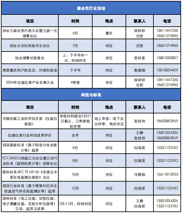 為發揮中國儀器儀表行業協會支撐政府、服務行業的橋梁作用,促進行業間交流與合作,引導產業健康發展,推進各項工作有序開展,更好地為協會會員企業服務,特將中國儀器儀表行業協會2024年主要工作計劃整理如下,供大家了解和參與。