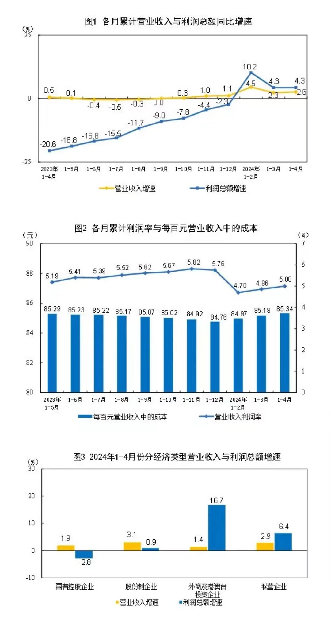 工業(yè)企業(yè)營收增長加快。隨著市場需求持續(xù)恢復(fù),工業(yè)生產(chǎn)增長加快,產(chǎn)品出廠價格降幅收窄,產(chǎn)銷銜接水平提升,共同推動企業(yè)營收改善。1—4月份,規(guī)上工業(yè)企業(yè)營業(yè)收入同比增長2.6%,增速比1—3月份加快0.3個百分點(diǎn)。從當(dāng)月看,4月份規(guī)上工業(yè)企業(yè)營業(yè)收入由3月份同比下降1.2%轉(zhuǎn)為增長3.3%,增速回升4.5個百分點(diǎn),回升幅度較大,有力帶動企業(yè)盈利改善。