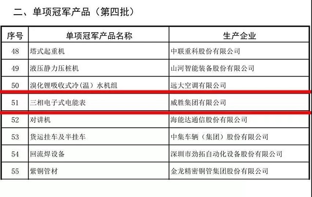 威勝集團三相電子式電能表成功入選第四批制造業(yè)單項冠軍產(chǎn)品。