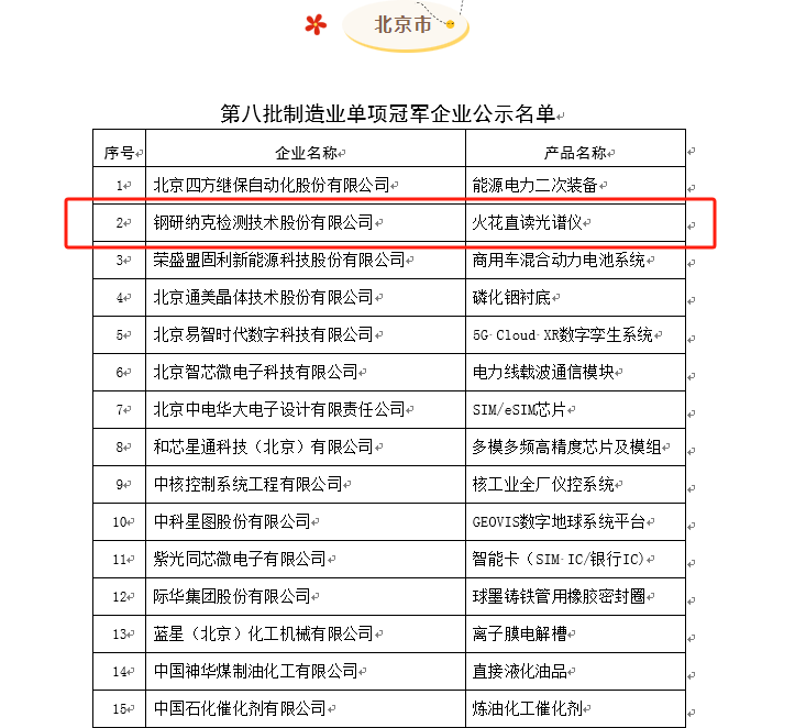 2024年3月4日,各省市工信廳(局)陸續(xù)披露第八批制造業(yè)單項(xiàng)冠軍企業(yè)和通過(guò)復(fù)核的第二批、第五批制造業(yè)單項(xiàng)冠軍企業(yè)名單,令人振奮的消息傳來(lái),鋼研納克分析儀器—火花直讀光譜儀憑借卓越的產(chǎn)品質(zhì)量和優(yōu)秀的市場(chǎng)表現(xiàn),成功榮獲第八批制造業(yè)單項(xiàng)冠軍產(chǎn)品稱號(hào),成為行業(yè)內(nèi)佼佼者。
