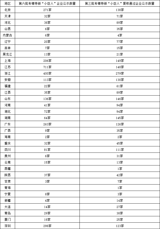 第六批專精特新“小巨人”公示名單分析及未通過原因分