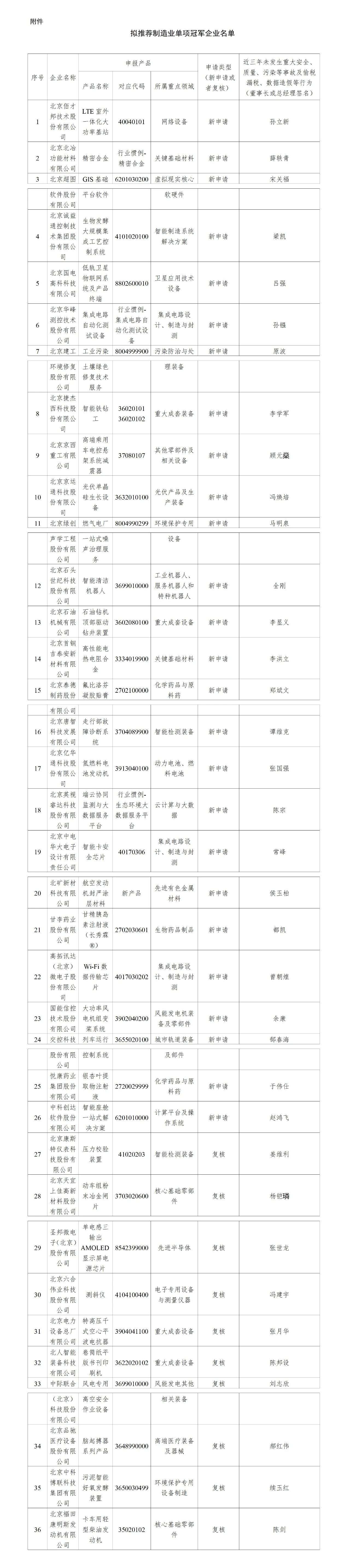 附件:擬推薦制造業(yè)單項冠軍企業(yè)名單