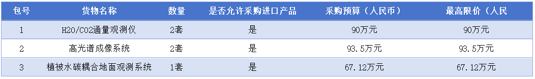 CO2通量觀測儀、高光譜成像系統及植被水碳耦合地面觀測系統公開招標