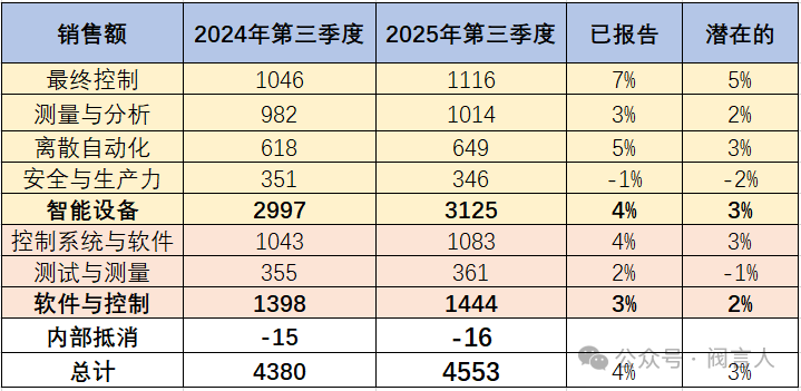 2025年度的第三季度,艾默生集團凈銷售額為45.5億美元(合計人民幣378億元),相比去年同期增長4%,其中和閥門、執行器、控制閥、定位器相關的最終控制板塊為11.2億美元(合計人民幣80億元),相比去年同期增長7%。