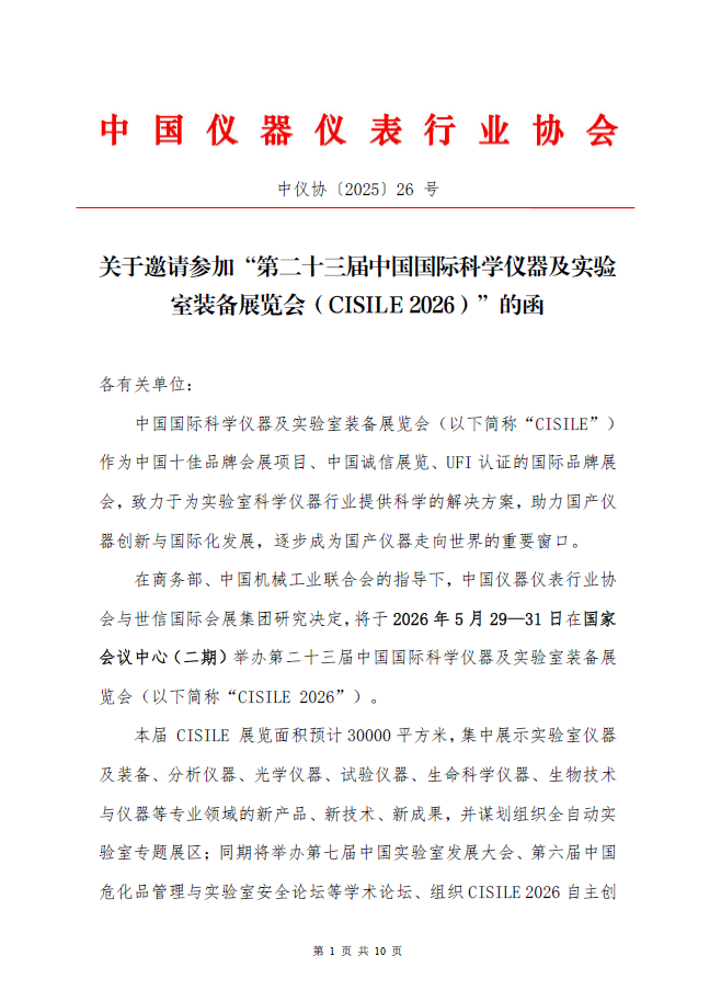 關于邀請參加“第二十三屆中國國際科學儀器及實驗室裝