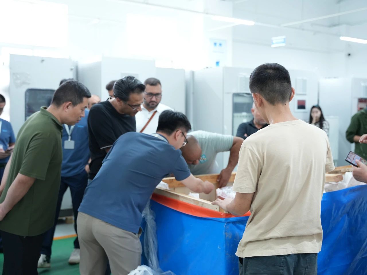 21日,東巴格達(dá)油田技術(shù)團(tuán)隊(duì)一行前往工廠車(chē)間進(jìn)行實(shí)地參觀與交流。在專業(yè)人員的陪同講解下,團(tuán)隊(duì)深入了解了超聲流量計(jì)產(chǎn)品的生產(chǎn)、工藝與應(yīng)用性能,并現(xiàn)場(chǎng)見(jiàn)證了檢測(cè)流程。除此之外,雙方還針對(duì)本次項(xiàng)目所用設(shè)備進(jìn)行了嚴(yán)格的FAT試驗(yàn),確保了產(chǎn)品品質(zhì)的精確、穩(wěn)定、優(yōu)質(zhì)。