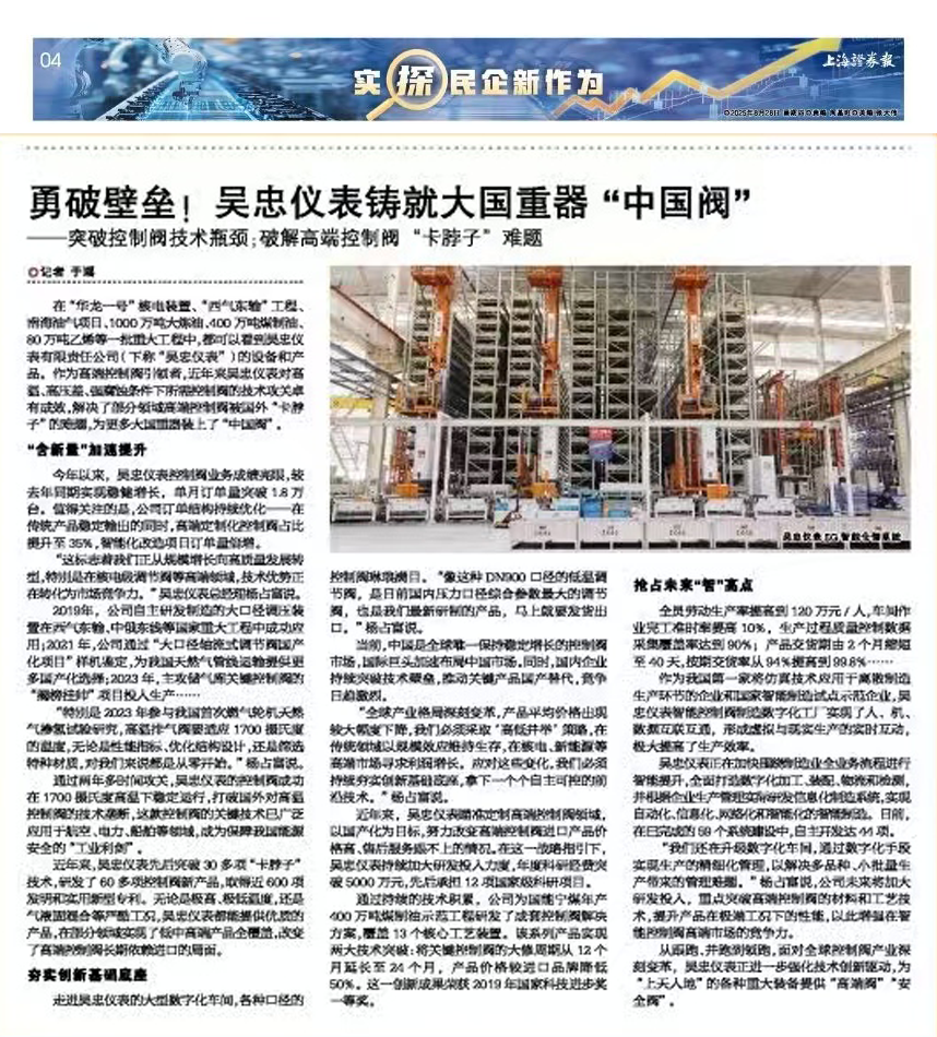 從跟跑、并跑到領跑,面對全球控制閥產業深刻變革,吳忠儀表正進一步強化技術創新驅動,為“上天入地”的各種重大裝備提供“高端閥”“安全閥”。