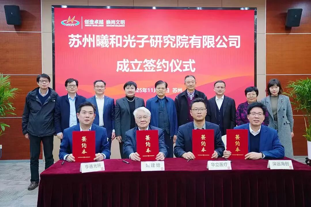 1117日,中國科學院院士姚建銓團隊與江蘇亨通光電股份有限公司(以下簡稱“亨通光電”)簽約成立蘇州曦和光子研究院有限公司,正式落戶蘇州吳江太湖新城。
