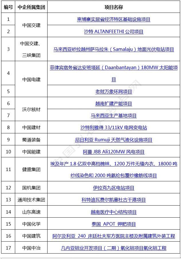 中企海外項目:上周新簽/中標/公告17個項目