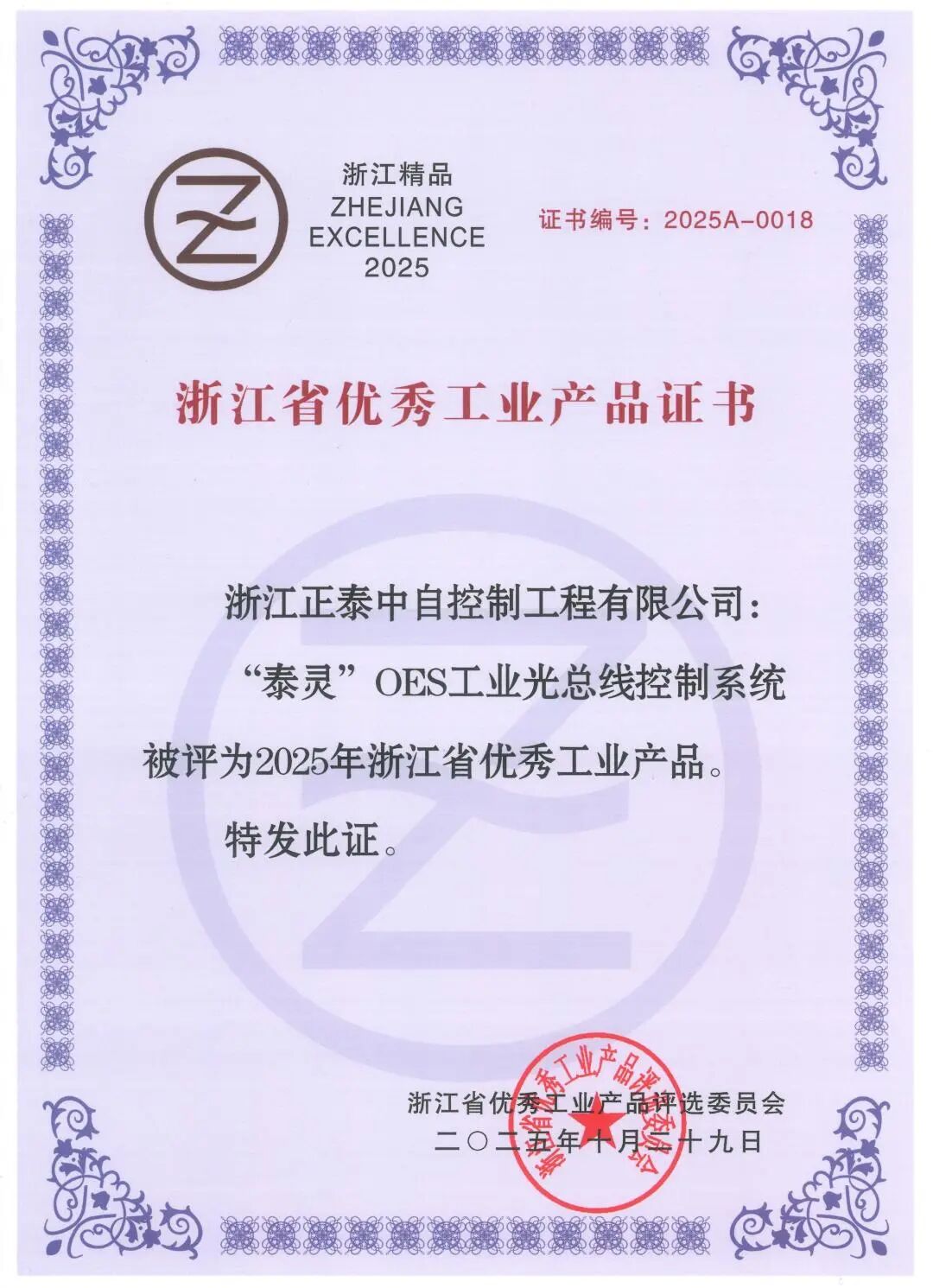 近日,浙江省優(yōu)秀工業(yè)產品評選委員會公布2025年浙江省優(yōu)秀工業(yè)產品名單,浙江正泰中自控制工程有限公司"泰靈"OES工業(yè)光總線控制系統(tǒng)憑借優(yōu)異的產品力從參加評審的產品中脫穎而出,成功入選2025 年浙江省優(yōu)秀工業(yè)產品名單,成為浙江優(yōu)質工業(yè)的代言產品。